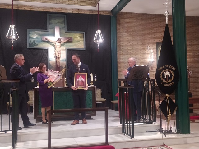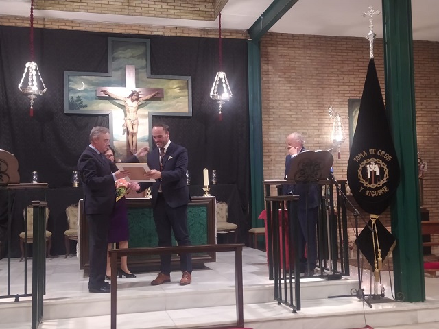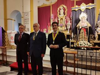 El 29 de marzo Viernes Santo a las 12.30 a.m. se realizó la entrega de la IV distinción "Ubis Charitas" que nuestra hermandad concede a aquellas personas e instituciones que se destacan a lo largo de su vida por su enrtrega a las personas necesitadas Este año tal distinción ha recaido en la persona del Padre Francisco Garcia Pérez premio que no pudo recoger personalmente por encontrarse enfermo, en representación suya lo hizo nuestro Director Espiritual D. Rafael de la Palma Moreno Ruiz de manos de nuestro Hermano Mayor D. Javier Pino Guzmán. El premio consta de un precioso retablo con nuestros Amantísimos Titulares acompañado de un donativo , que conociendo al premiado, será distribuido entre le gente humilde y necesitada.