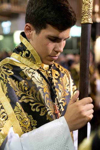 David, nacido en Algeciras y que en la actualidad cursa 1º de Bachillerato en el Colegio la Inmaculada de Algeciras. Aunque, desde los tres años de edad, cursa sus estudios hasta secundaria, en el colegio Ntra Sra de Los Milagros, 13 años, en los que la impronta de las Hijas de la Caridad, hicieron mella en él. La Virgen Milagrosa es espectadora de su crecimiento no sólo académico si no también en la fe, alimentado por el acompañamiento de las añoradas monjitas del colegio. Con apenas días, entra a engrosar la nómina de hermanos de la Cofradía Medinaceli de Algeciras, devoción compartida con los miembros de su familia. Su padre, David Mota, en aquellos años miembro de su Junta de Gobierno, ayudó a que la presencia del pequeño David ante la mirada de Jesús de Medinaceli y la Esperanza fuera una constante en su vida. Desde ese momento el Señor y su madre me han seguido llamando al servicio de la Iglesia a través de las cofradías. Desde hace unos años, Hermano de la hermandad de la Mortaja donde participa activamente en su grupo joven. Aunque, antes que su labor cofrade, destacar su labor en la Iglesia y el interés en hacer llegar la palabra de Dios a sus compañeros. Este hecho posibilita el que en la actualidad colabora de forma muy activa en la organización de Horas Santas de jóvenes en la Parroquia. Peregrino del Jubileo 2025 a Roma, JMJ de Lisboa, apasionado de la vida de los Santos Padres y fiel seguidor de muchas hermandades y cofradías de todo el territorio nacional. Un joven, que a sus pocos años, ya atesora un importante conocimiento y cultura cofrade y sobre todo de FE. |