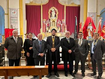 Al acto acudieron el presidente del Consejo Local de Hermandades y Cofradías de Algeciras, Nicolás Fernández Arjona; el presidente de la Asociación Cultural de Tertulia Cofrade ‘La Levanta’, Manolo López Arcas; y representantes de distintas Hermandades y Cofradías de la ciudad. Nuestra Hermandad estuvo representada por nuestro Hermano Mayor José Ramírez y el Mayordomo Rafael García Vera. |
