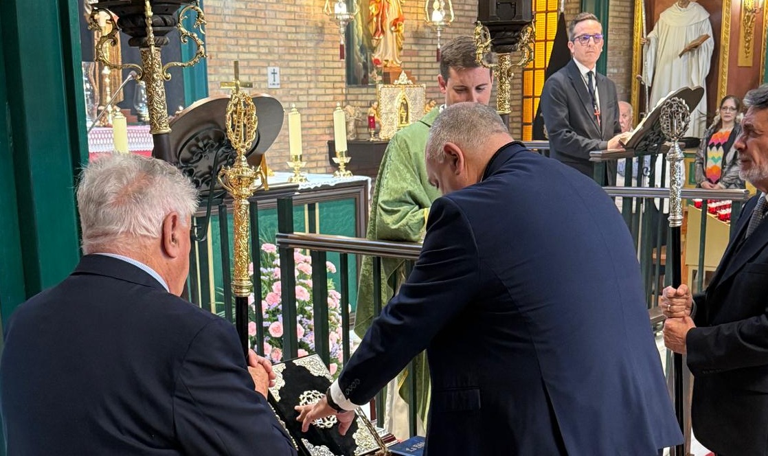 El primer teniente de alcalde, Jacinto Muñoz, acompañado por los tenientes de alcalde María Solanes y Jorge Juliá, ha asistido a la solemne apertura del Curso Cofrade 2025-2026, celebrada en la Iglesia Mayor Parroquial y Santuario de Nuestra Señora de la Palma. |
